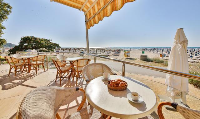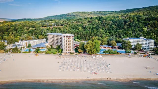 | Štvorhviezdičkový hotel Kaliakra Beach sa rozkladá priamo pri krásnej piesočnatej pláži, ktorá je jednou z najkrajších v Bulharsku. Svojim klientom ponúka klimatizované izby. Centrum letoviska Albena, s možnosťou nákupov a posedení v niektorej z miestnych reštaurácií, je od hotela vzdialené približne 250 metrov. Klienti určite uvítajú možnosť využitia lehátok a slnečníka na pláži zadarmo. Hotel je vhodný pre všetky vekové kategórie, predovšetkým pre rodiny s deťmi. |